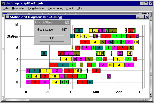 Textfenster sowie graphisch als Gantt-Diagramm dargestellt werden.