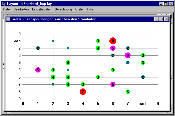 Beim Layout-Problem (auch innerbetriebliches Standortproblem genannt) sind Anordnungsobjekte so zu potentiellen Standorten zuzuordnen, daß die Gesamttransportleistung möglichst minimal wird. Die Gesamttransportleistung ergibt sich aus dem Produkt aus der Entfernung zwischen zwei Anordnngsobjekten und der zwischen ihnen zu transportierenden Menge, summiert über alle Anordnungsobjekte. Es wird dabei angenommen, daß die Kosten proportional zur Entfernung und Menge sind. Die Anzahl der Anordnungsobjekte ist gleich der Anzahl der potentiellen Standorte, andernfalls werden zusätzlich fiktive Anordnungsobjekte mit Transportmengen gleich Null eingeführt.