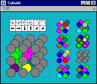 der oberen Funktionstasten gedrückt wird. Das Spiel ist gelöst, wenn der große Würfel vollständig