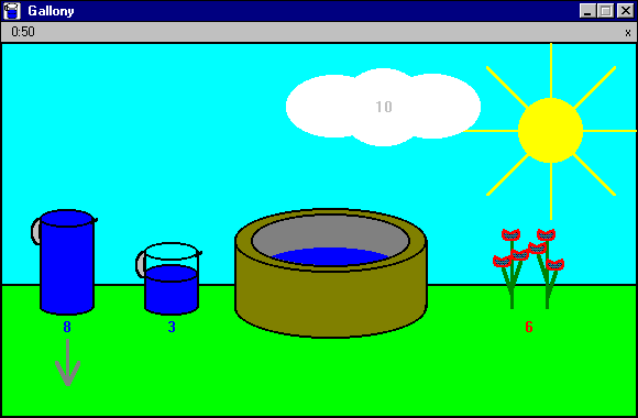 im ersten Gefäß können dann die Blumen gegossen werden, dann ist das Spiel gelöst.